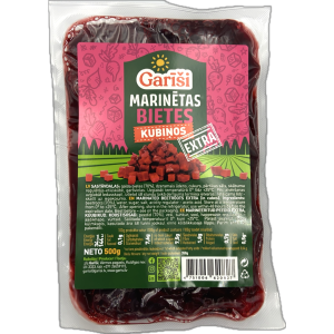 Marinētas galda bietes ar īpašu garšvielu sastāvu. Grieztas kubiņos